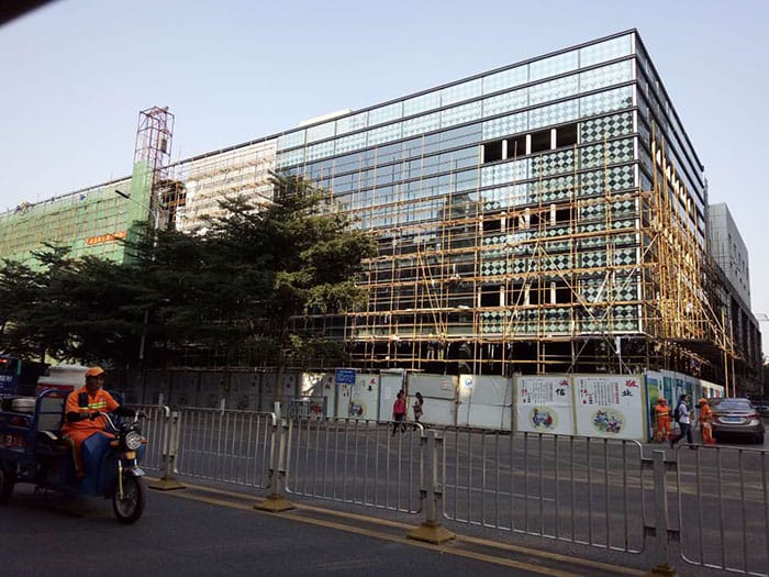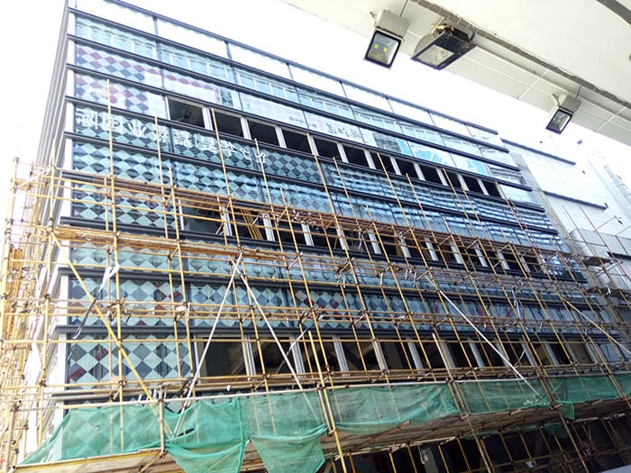 Glass curtain wall construction site