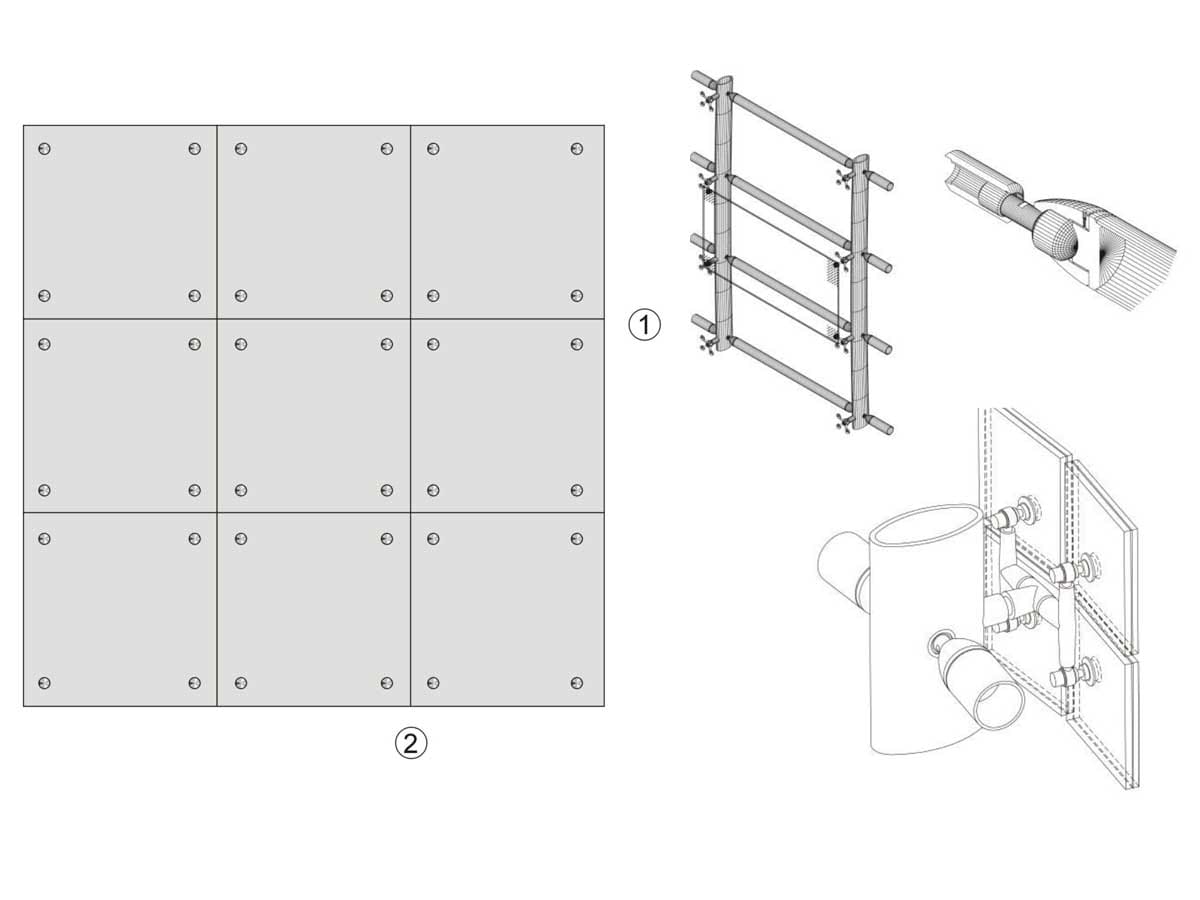 - Components of the curtain wall (framing, glass, and other elements) are delivered to the construction site in individual pieces and assembled piece-by-piece.