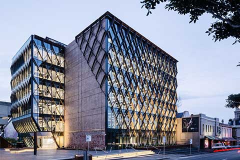 The Knowledge Tower at the University of Melbourne is designed as a flexible, multi-use teaching building that encourages collaboration and interdisciplinary learning. The building is equipped with a high-performance glass curtain wall system featuring integrated automated sun shading. The façade is designed to reduce solar heat gain during the summer months, while maximizing daylight penetration into the interior. The curtain wall system also incorporates solar control glass to improve the building’s overall energy efficiency.